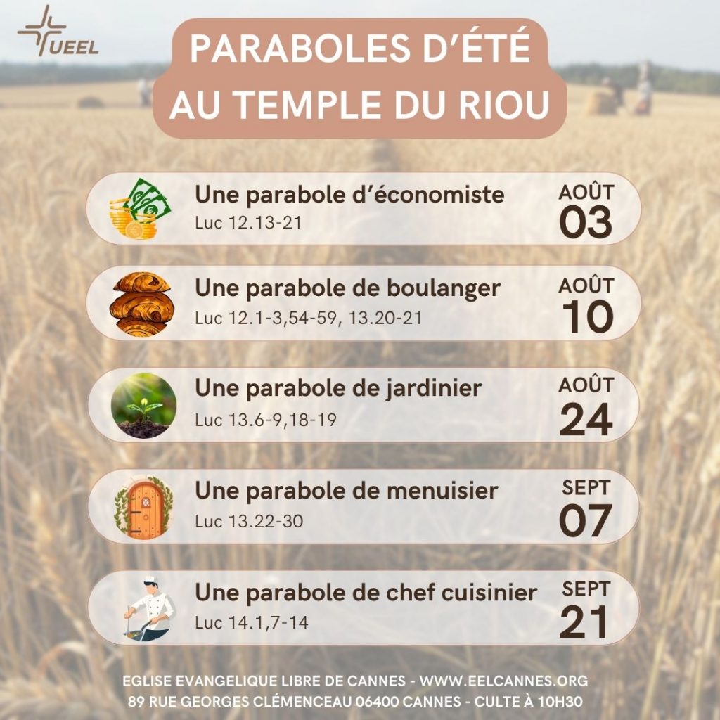 Nous profitons de l’été pour démarrer une nouvelle série de cultes. Une série qui a pour titre : « Paraboles d’été », racontées au prisme de divers métiers : #économiste #boulanger #jardinier #menuisier #chefcuisinier